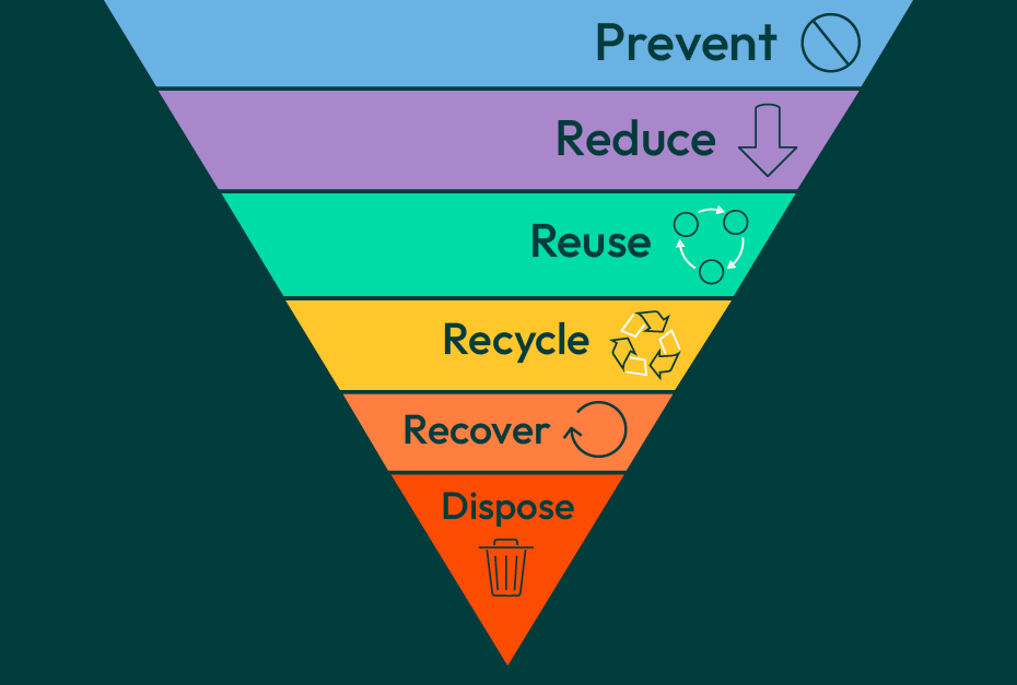 Avoiding waste is the ideal solution, because then there is no need to consider options for recycling or disposing of material. The waste hierarchy is a long established guide which illustrates the order in which waste management measures should be prioritised based on environmental impact. Everyone has a duty of care to dispose of waste safely.