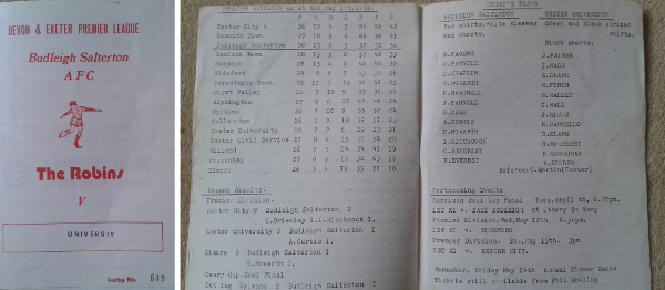 - Scoring 2 vital goals that helped the 2nd X1 win the Devon & Exeter League at the end of the 1969-70 season at Newton Rangers, Torbay.