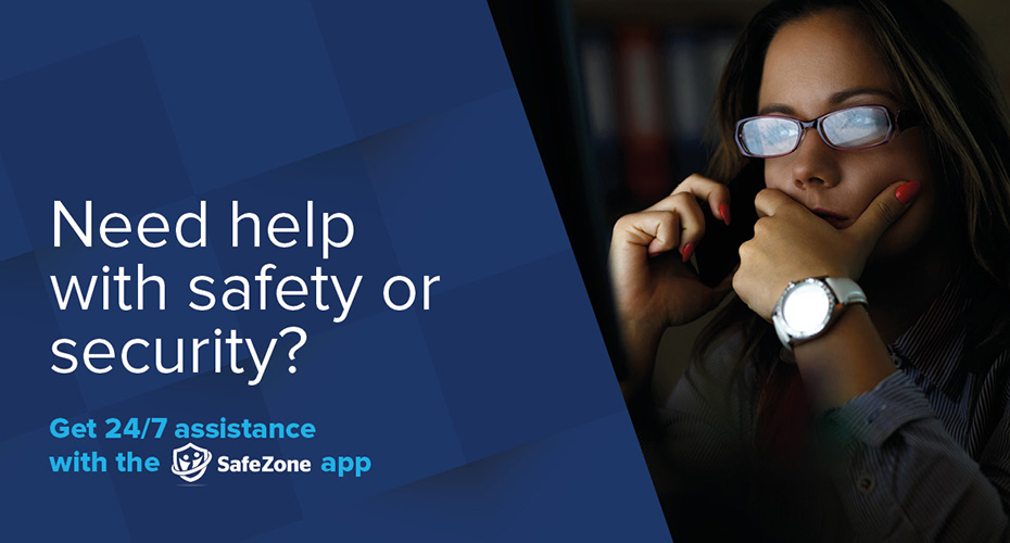 SafeZone allows you to call for help and alerts the security team of your situation and location, so that we can co-ordinate to help you quickly and effectively.