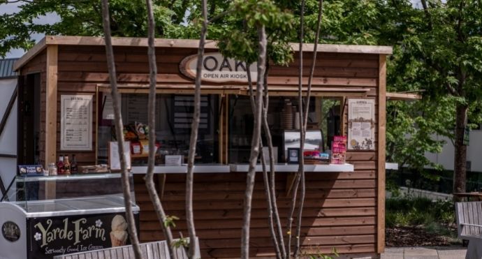 The Open Air Kiosk (OAK) is our 'small but sweet' Barisca outlet situated on the Forum piazza. It is a wooden kiosk, selling our range of Barisca Fairtrade hot drinks, cold drinks, pastries, cakes and other snacks.