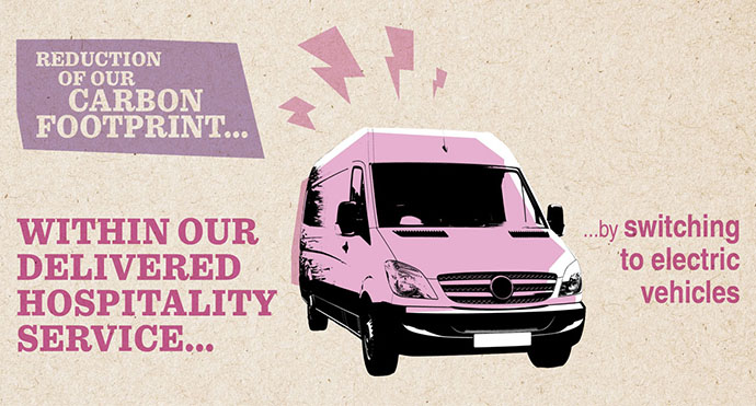 - By switching to electric vehicles for our delivered food service we have drastically reduced our emissions. 80 % of our vehicle fleet are now electric.