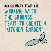 We are continuously working towards actions on our and looking for new ways and initiatives to create more sustainable practices. This year one of our main projects is in developing a Kitchen Garden with the University Grounds Team.