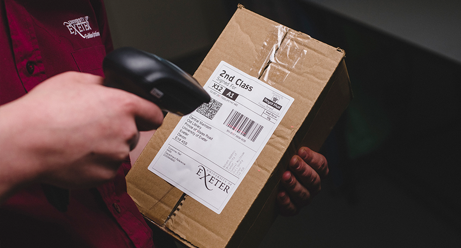 Please email mailroom@exeter.ac.uk providing your home address. Items will be sent to you either by Royal Mail or ParcelForce. We can also provide remote collection from your home address back to campus, or onwards for standard mail/parcel items. Please contact us for more details.