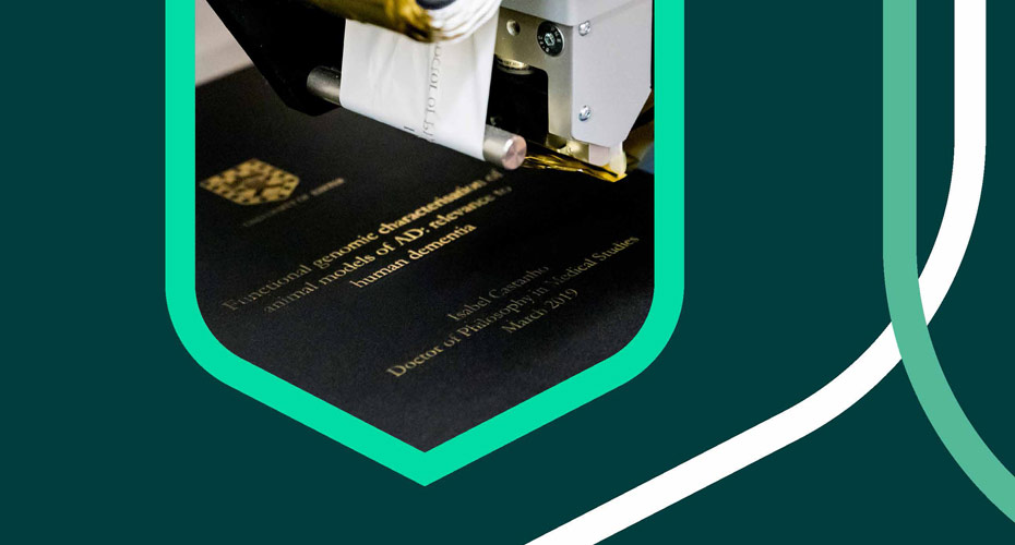 We can print, bind and submit doctoral thesis for distance learners' students who are not on campus, you must provide a completed submission form.