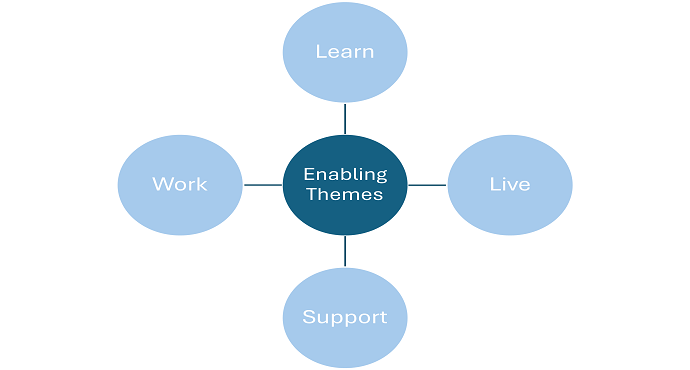 The Enabling Themes apply to all University of Exeter students and colleagues and cover areas that span all of the Domains in the University Mental Health Charter. These include University strategy, student voice and participation, inclusivity, cohesive support, and research and innovation. The Enabling Themes are very broad in scope and so our associated actions are also quite broad, covering all areas of the themes.