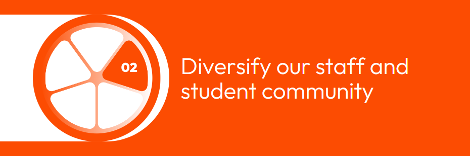 The overarching goal of diversifying our staff and student community involves several key objectives. To increase representation of Black, Asian, and Minority Ethnic staff, we will improve recruitment practices, investigate any disparities, and collect more intersectional data. This will involve developing guidance, training, and support for prospective applicants, and offering scholarships for Black, Asian, and Minority Ethnic postgraduates. We will also evaluate support for international students through the lens of Race Equality Charter findings. To increase representation of Black, Asian, and Minority Ethnic students, we will work on improving their numbers and continuation rates. These efforts will help us create a more diverse and inclusive university community that upholds equity and respect for all individuals, regardless of their ethnicity or nationality. To gain insight into the specific aims that we will pursue, please see below.