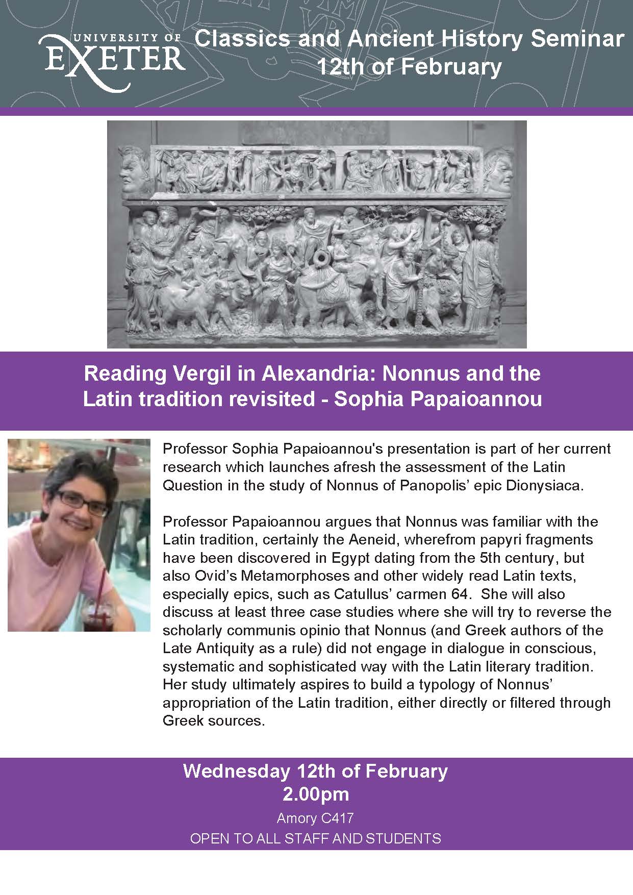 Sophia Papaioannou (Athens): Reading Vergil in Alexandria: Nonnus and the Latin tradition revisited