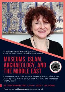 The Centre for Islamic Archaeology presents 'Museums, Islam, Archaeology and the Middle East', a conversation with Dr Venetia Porter; Curator, Islamic and Contemporary Middle East, British Museum, and Professor Timothy Insoll.