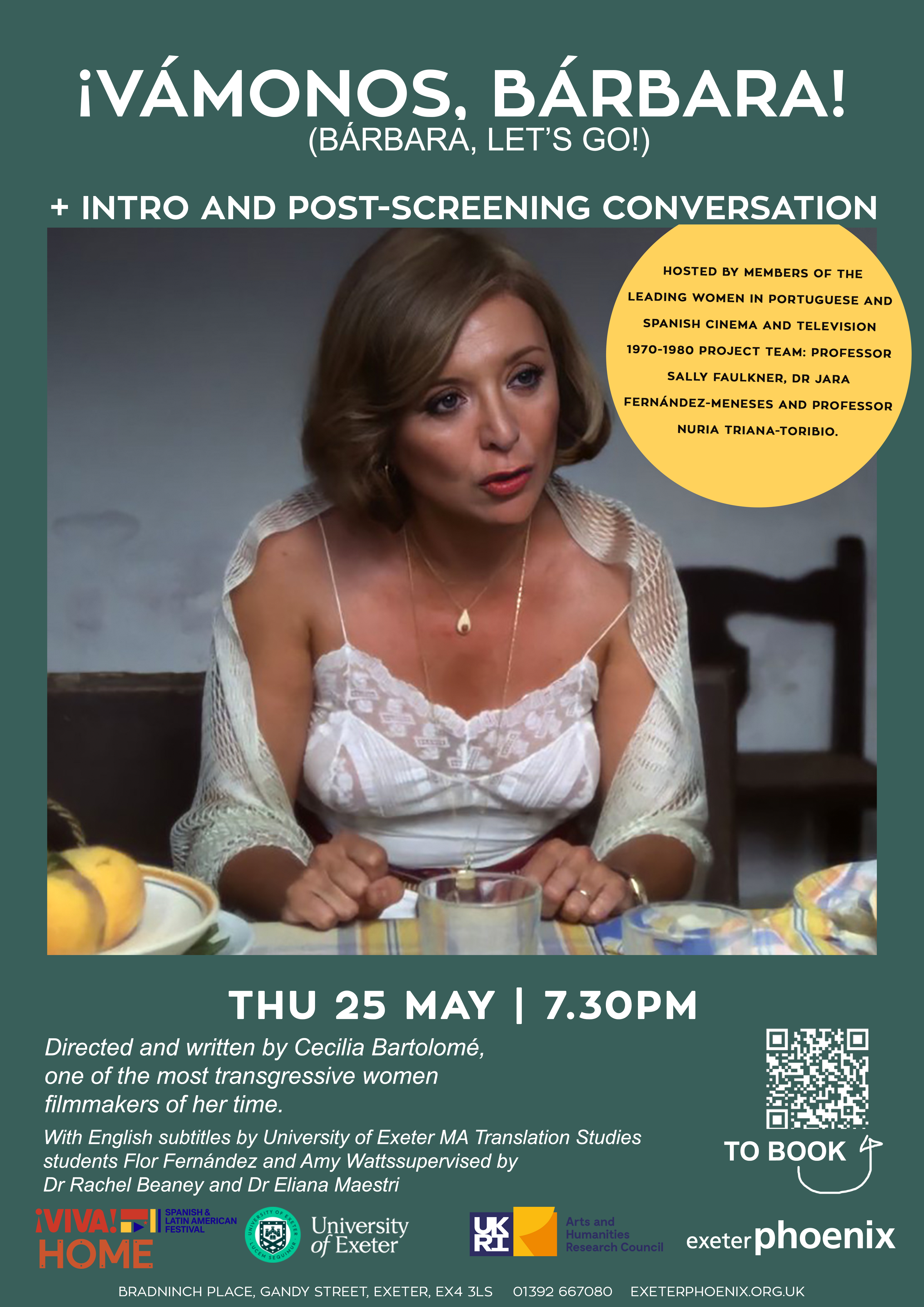 The panel will be over at 5 pm. However, please note that our event will continue at the Phoenix at 7.30 pm with the screening of ¡Vámonos, Bárbara! by Cecilia Bartolome', with English subtitles.