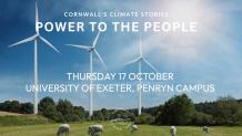 Join the Graduate School of Environment and Sustainability and the Environment and Sustainability Institute (ESI) on Thursday 17 October at 6pm for a screening of the inspiring Cornish film 'Power to the People' in the Chapel Lecture Theatre. This 40 minute film by Cornwall Climate Care discusses the exciting opportunities and huge challenges facing us as we wean ourselves off fossil fuels.