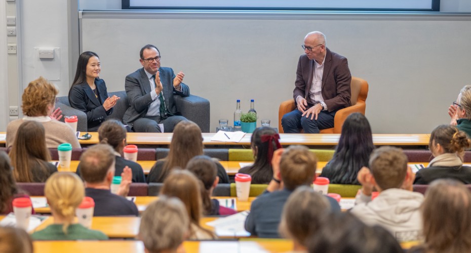 HASS Pro-Vice-Chancellor, Professor Gareth Stansfield, welcomed guests and introduced Oliver, who was in conversation with Deputy Pro-Vice-Chancellor, Professor Adam Watt and Associate Pro-Vice-Chancellor for Global Engagement, Professor Li Li.