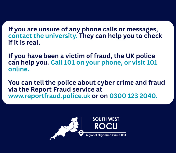 We’ve received reports that students at other universities are being called by a person pretending to be a senior member of staff from that university’s finance team.