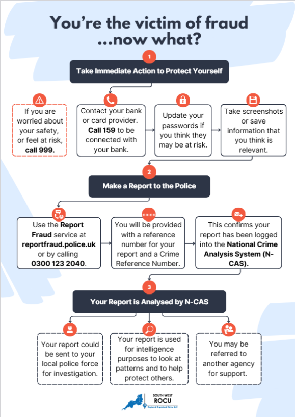 If you think you’ve been scammed or have been contacted by someone and it seems unusual or unexpected, take action!
