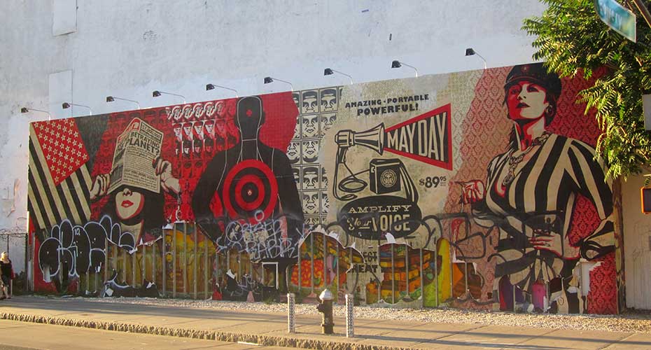 Image copyright: "NYC - East Village: Bowery Mural - Shepard Fairey's May Day" by wallyg.