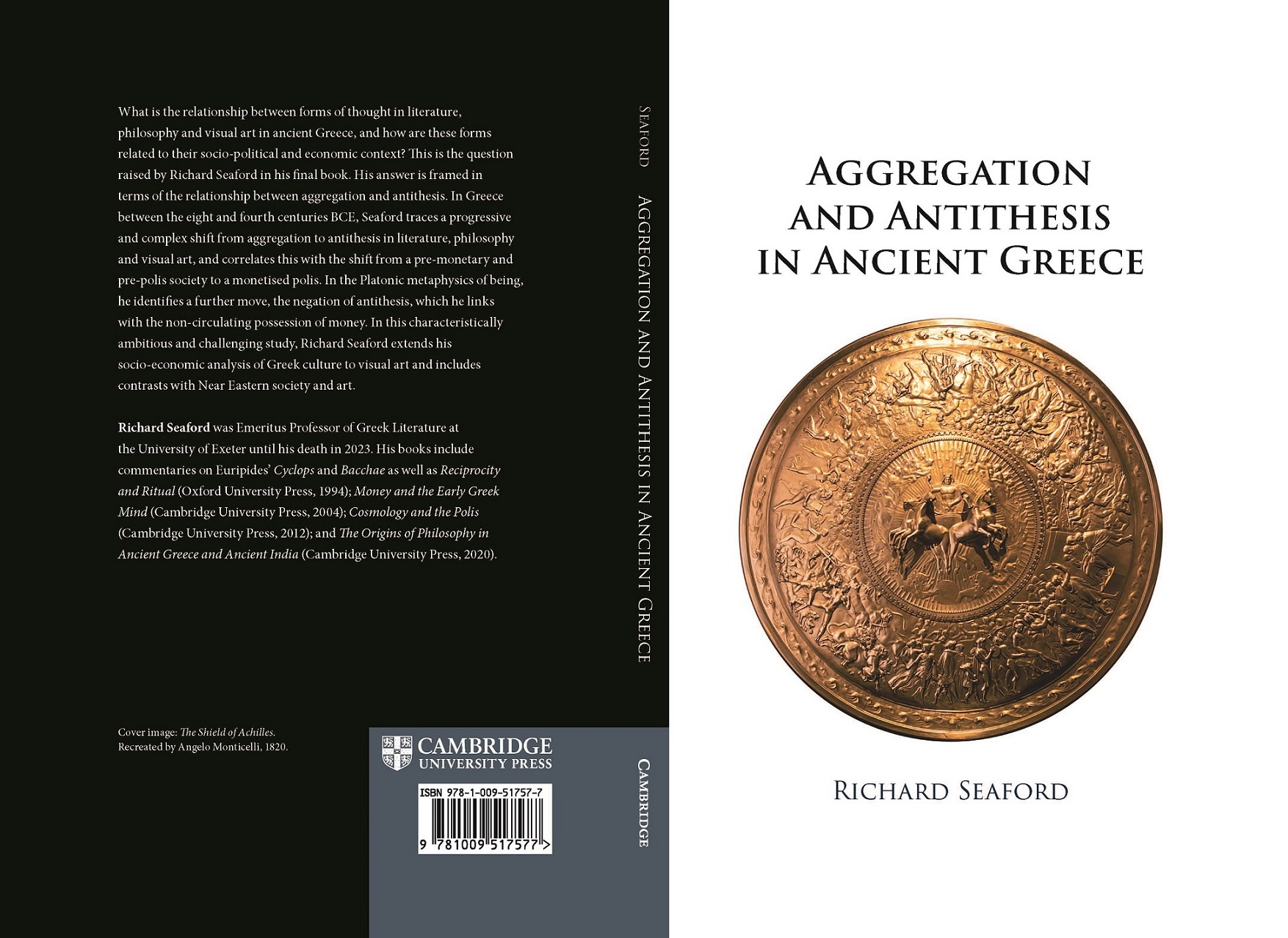 Richard Seaford’s final monograph (just published by Cambridge University Press) is Aggregation and Antithesis in Ancient Greece. (Another book, One God, No King: The Origins of Monotheism in Greece and Judah, co-authored with Joachim Schaper, a theologian at Aberdeen University, is to appear soon also with Cambridge University Press.) Both books were completed shortly before Richard’s death, and he was strongly committed to completing the books and ensuring they were published in due course.