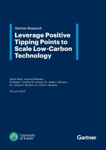 Business leaders can identify “tipping points” to lead their industries in the adoption of low-carbon technologies, according to a new report by Gartner Inc. and the University of Exeter.