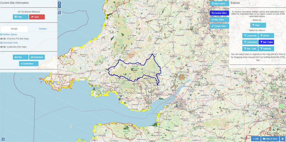 - It allows users to explore the usage and welfare values that are generated by currently accessible greenspaces. Welfare values can be viewed at individual site level or aggregated by regions.