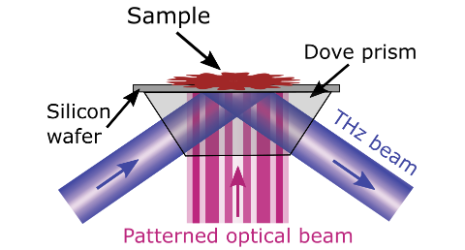 To obtain sufficient resolution, we need to record the THz radiation very close to the cancerous tissue, using the geometry illustrated in Figure 2. This geometry allows a form of superresolution imaging3, where image detail can break the diffraction limit by orders of magnitude, and allows us to measure sub-mm features in inhomogeneous tissues.