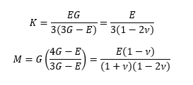 Here, M is the Plane Wave modulus and K is the Bulk Wave Modulus: both are very useful values for any structural modelling exercise, and generally need to be known to a high degree of accuracy in order to achieve realistic predictions. However, there is an immediate problem: if v is 0.5 then the denominator on the right-hand side becomes zero. This means that the calculation of M and K from measured properties of near-incompressible materials (v -> 0.5) can lead to unphysical results where K and M are overestimated by many orders of magnitude. Combined with the fact that even small errors in the DMA calculations of E and G will lead to further large errors in K and M [8], it is difficult to obtain reliable data for the rubbery materials that are so important in acoustic and vibration damping.