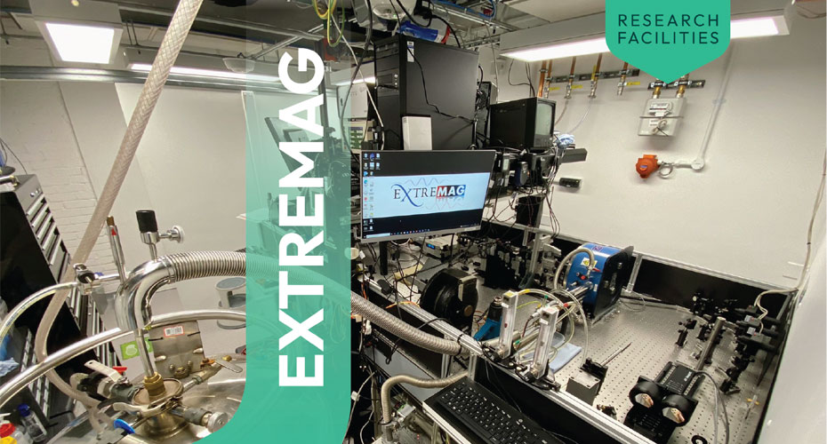 The Exeter time-resolved magnetism (EXTREMAG) facility is an EPSRC funded ultrafast laser facility that offers its users low temperature and high magnetic field environments in a variety of time-domain optical pump-probe, microscopy, and terahertz experiments.