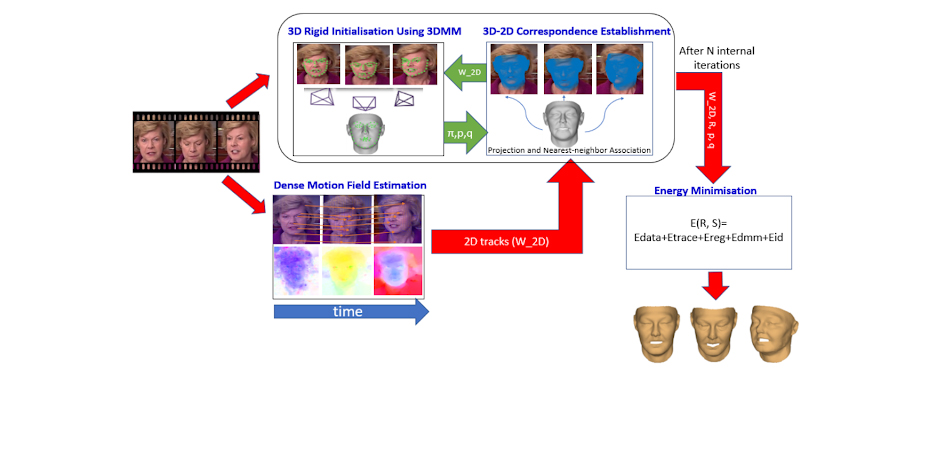 Monocular 4D face reconstruction is a challenging problem, especially in the case that the input video is captured under unconstrained conditions, i.e. “in the wild”. The majority of the state-of-the-art approaches build upon 3D Morphable Modelling (3DMM), which has been proven to be more robust than model-free approaches such as Shape from Shading (SfS) or Structure from Motion (SfM).