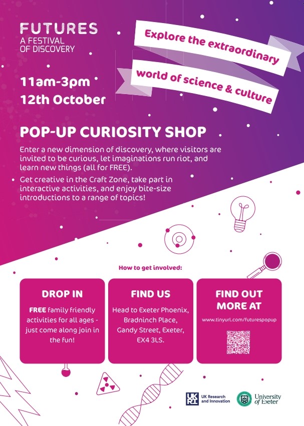 Our FUTURES Pop Up Curiosity Shop invites visitors to let their imaginations run wild and embrace extraordinary new ideas! Visit Exeter Phoenix on Sunday 12th October, 11am - 3pm to discover more.