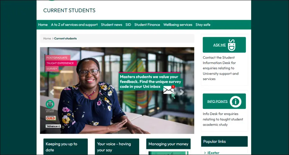The University of Exeter website comprises of four main template designs; the design and content of which are targeted to meet the needs of the University's audiences.