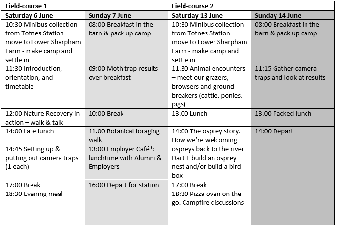 A four-day residential at Lower Sharpham Farm (Totnes, Devon) will take place over two weekends:
