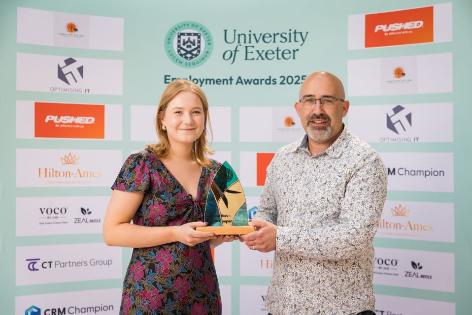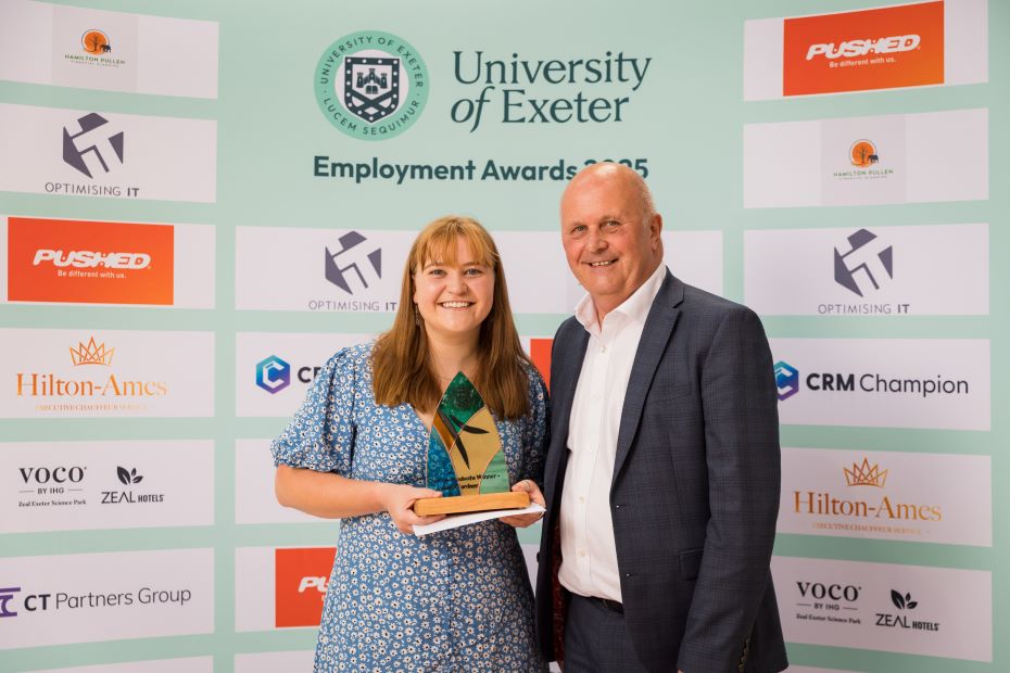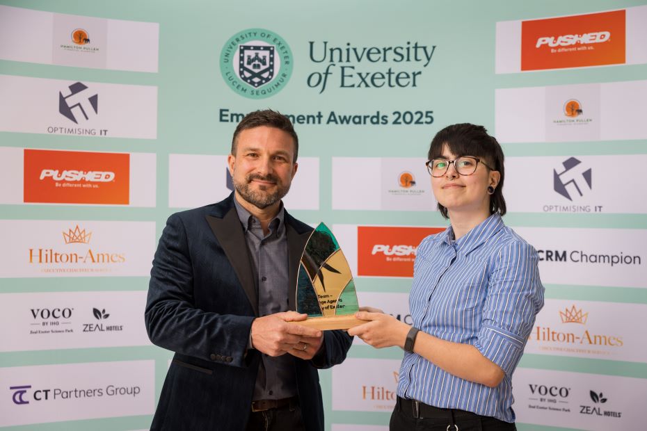 The University of Exeter Employment Awards celebrate the achievements of students who are employed alongside their studies and recent graduates undertaking full-time work. The awards provide formal recognition of the hard work, commitment and time management skills required to attain academic success and take active steps towards enhancing employability skills and preparing for a future career.