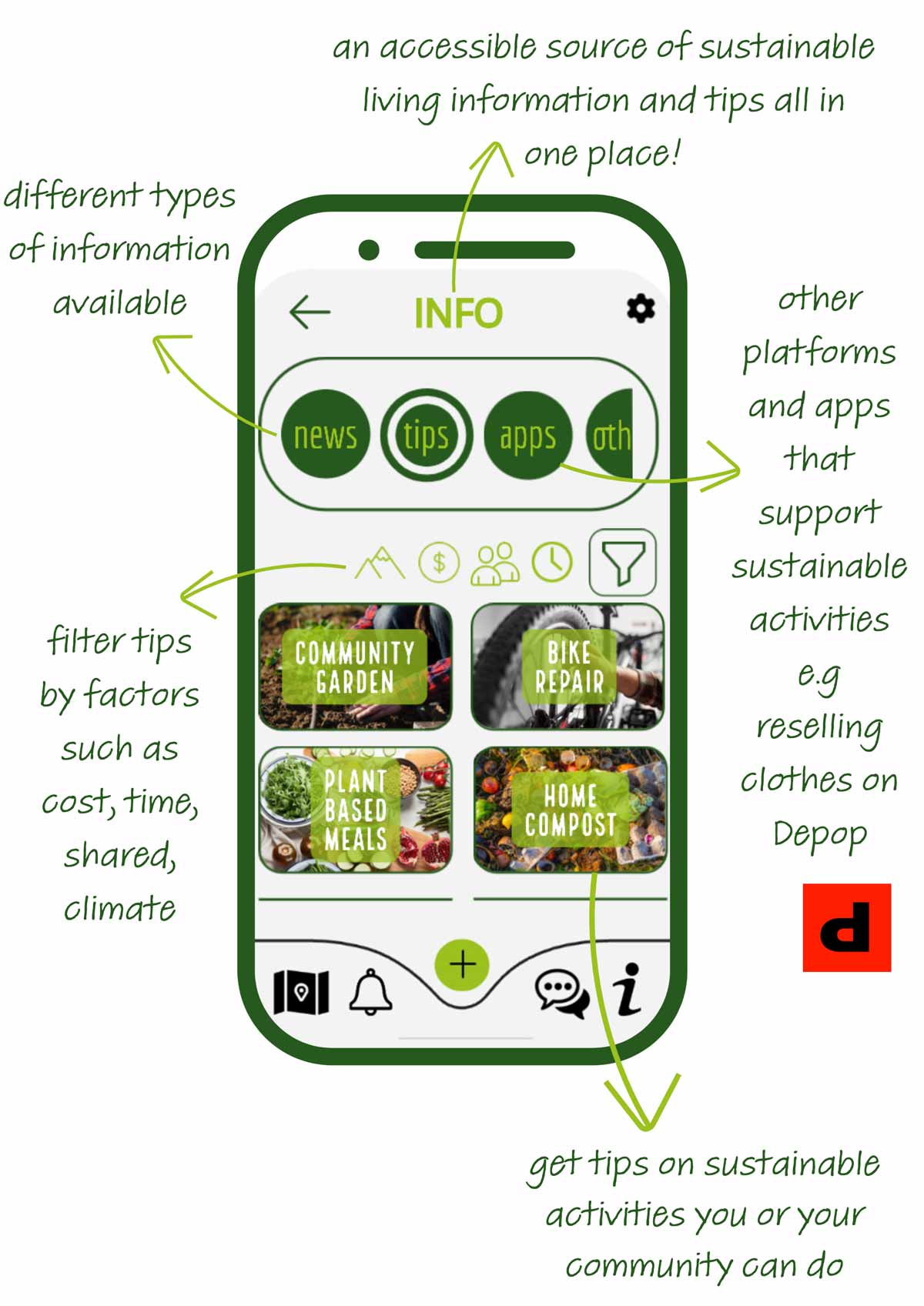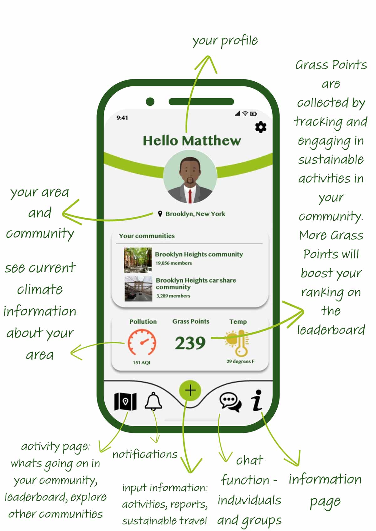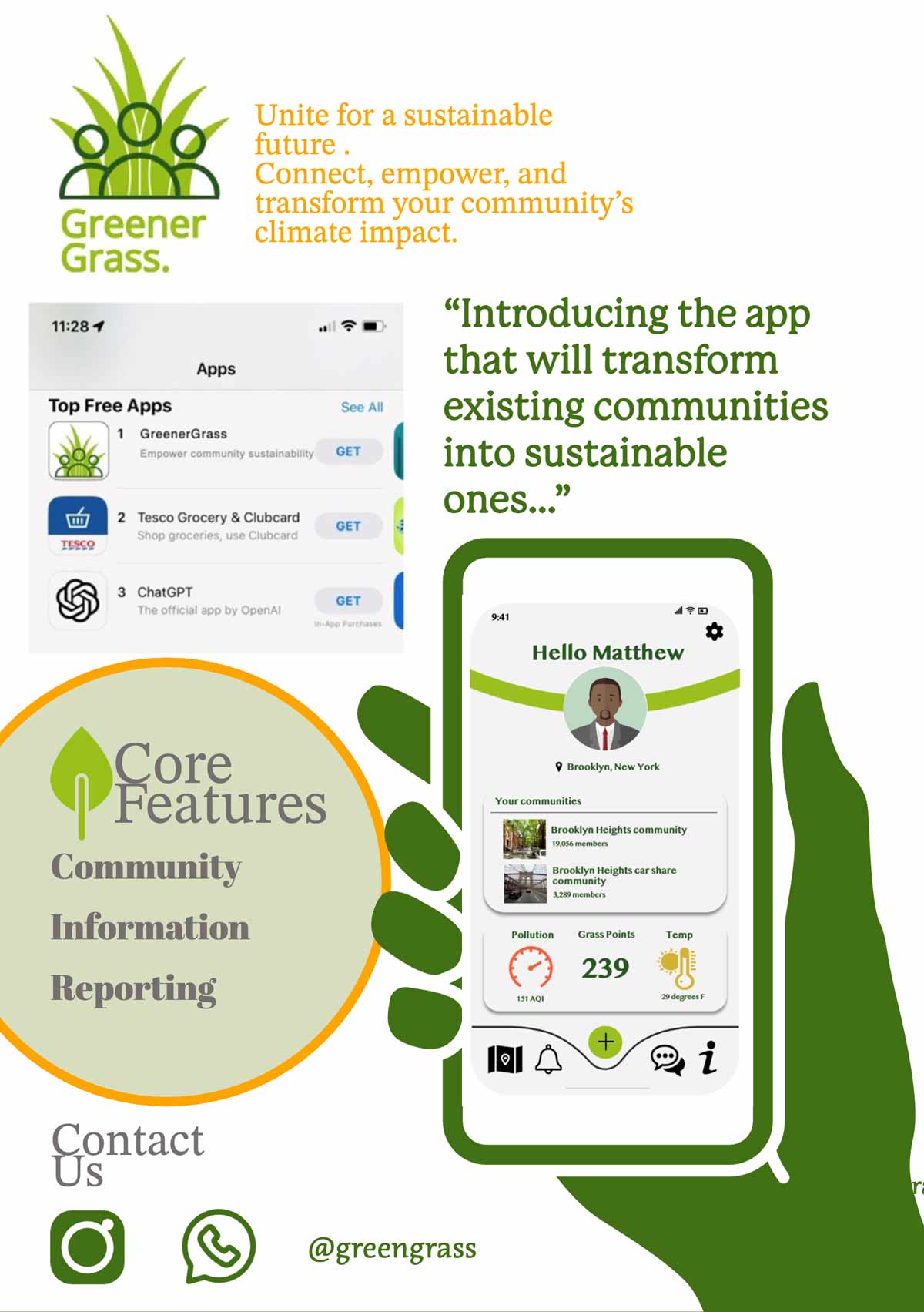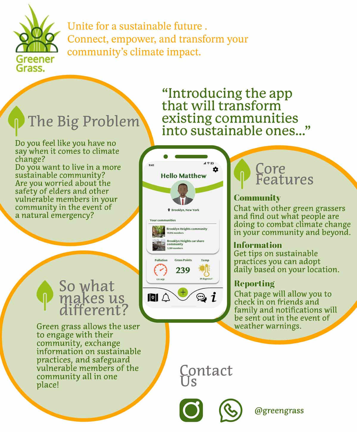 This group created an app that would allow individuals to connect with projects and other people to help improve their sustainability. Greener Grass made an app that had a chat function to connect with other people who want to improve their sustainability, a section listing local activities and events, and an info hub with tips for making your life more sustainable.
