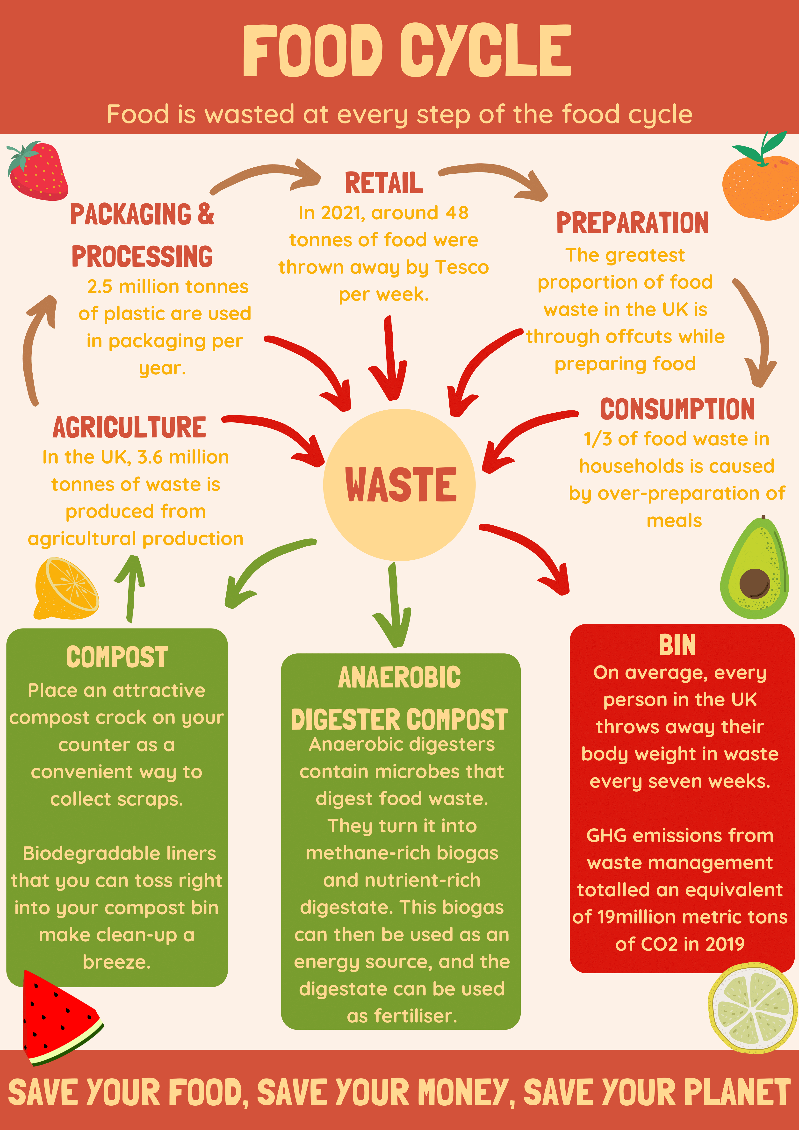 This project aims to raise awareness of food waste and give people tips on how to lower their food waste through bookmarks, posters, and a video game. They have also researched, and are proposing to the University as part of this project, the benefits of installing an anaerobic digester on campus. The third part of the project aims to connect with the local community. This is so that they can supplement the university’s food waste that goes into their anaerobic digester with that fromlocal businesses and farms. They could then re-distribute the products of anaerobic digestion to these farms as fertiliser, creating a mutually beneficial cycle.