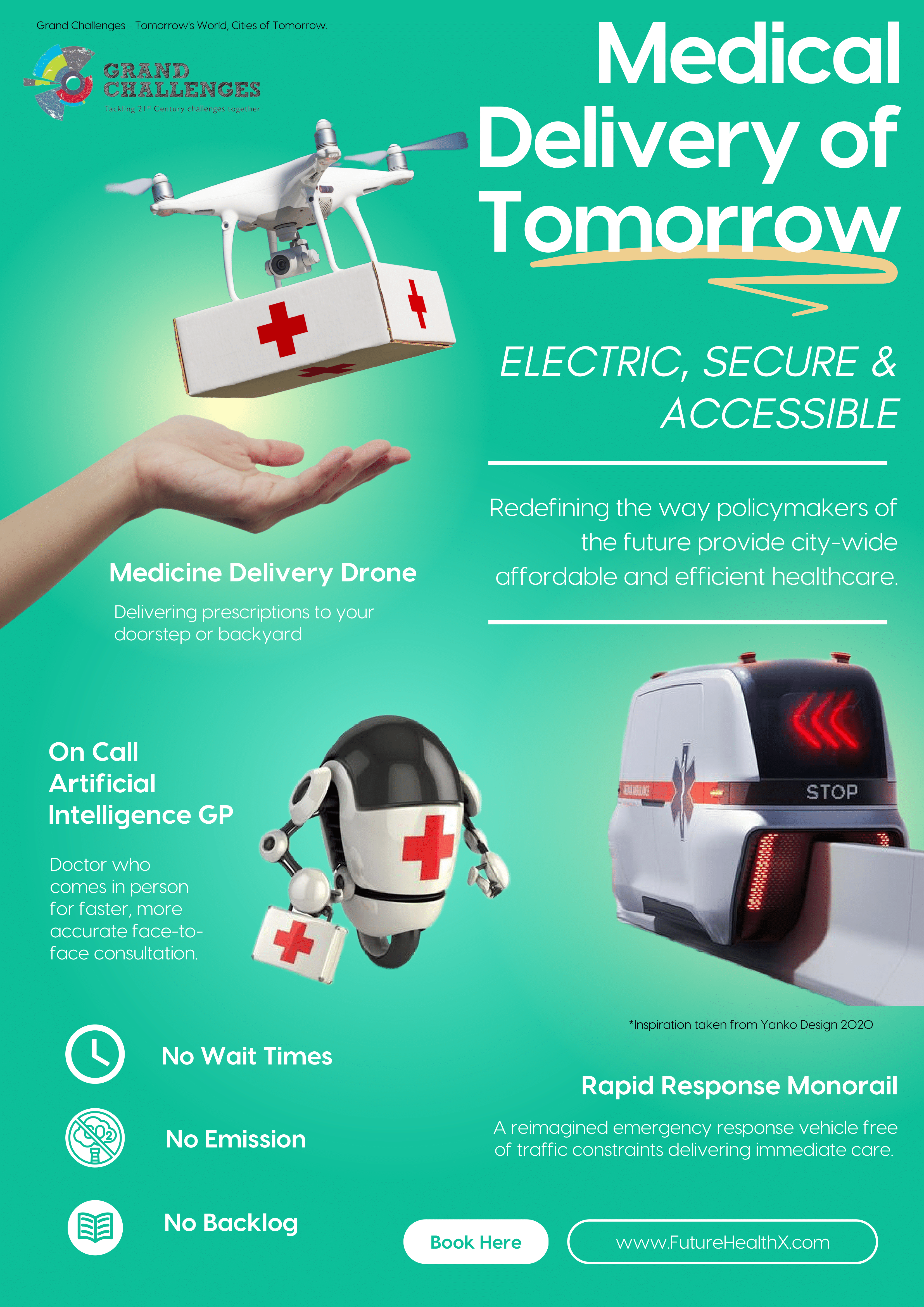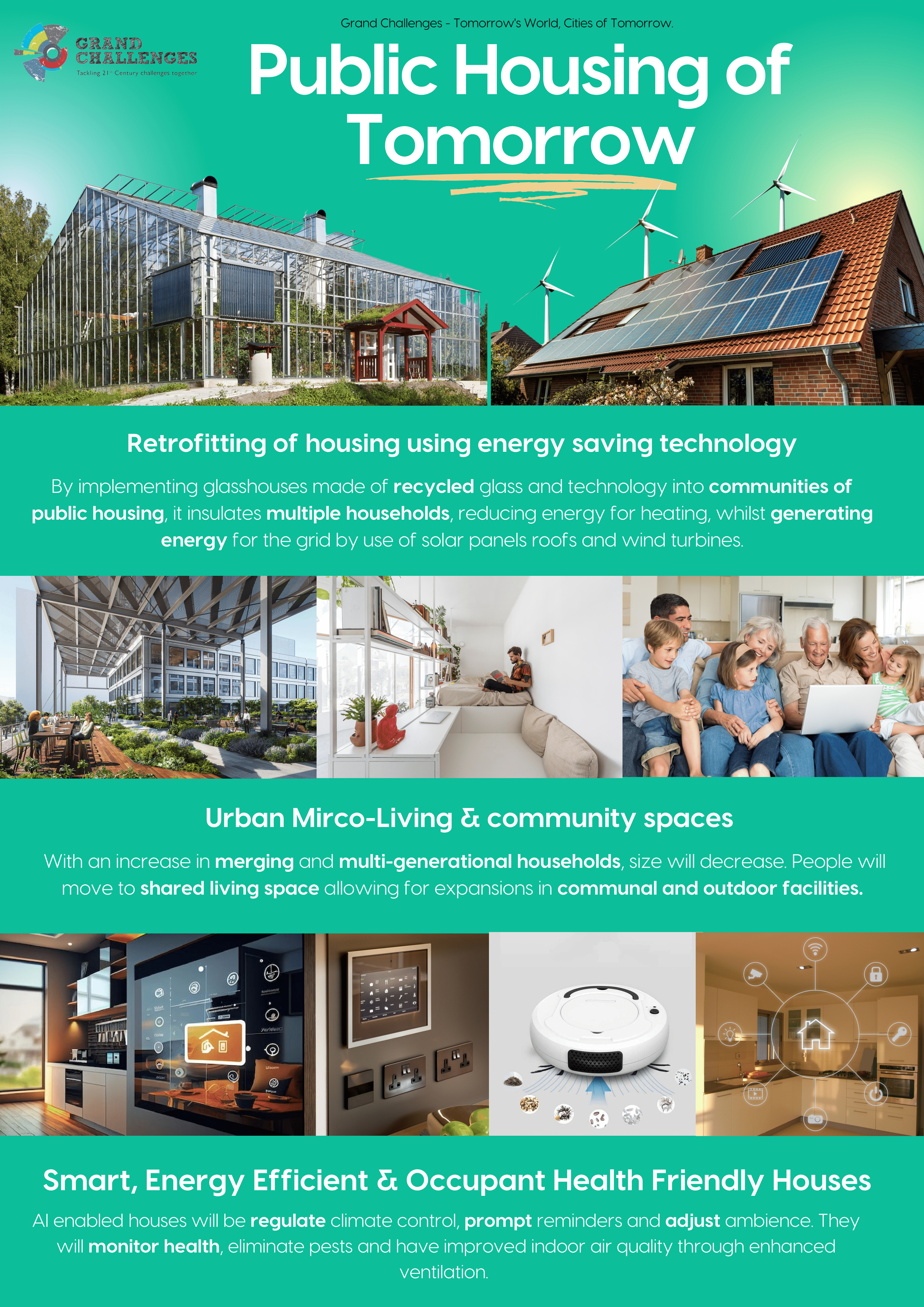 This project aims to redefine the way future policymakers implement city-wide infrastructures which encourage sustainability and community. This includes affordable and quicker healthcare through medical delivery drones and A.I. GPs; encouraging microliving through widening community support and retrofitting public houses with recycled glass and solar panels. This also encourages development of public transport infrastructures, as well as city planning. You can visit their website here.