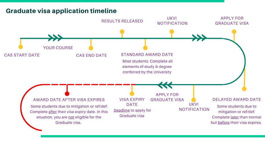 If you have any outstanding assessments after your course end date has passed, you will need to contact your Hub for an estimated award date. If this is after your visa expiry date, this is may affect your Graduate Visa eligibility.