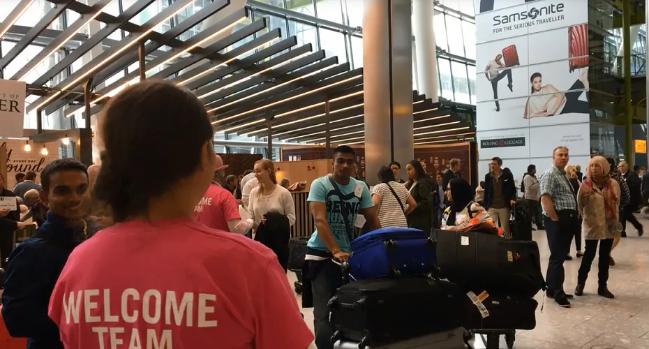 - Report to the Exeter Welcome Team (inside Terminal 5) no later than 20 minutes before your coach departure time. They will be wearing pink t-shirts and holding Exeter signs.